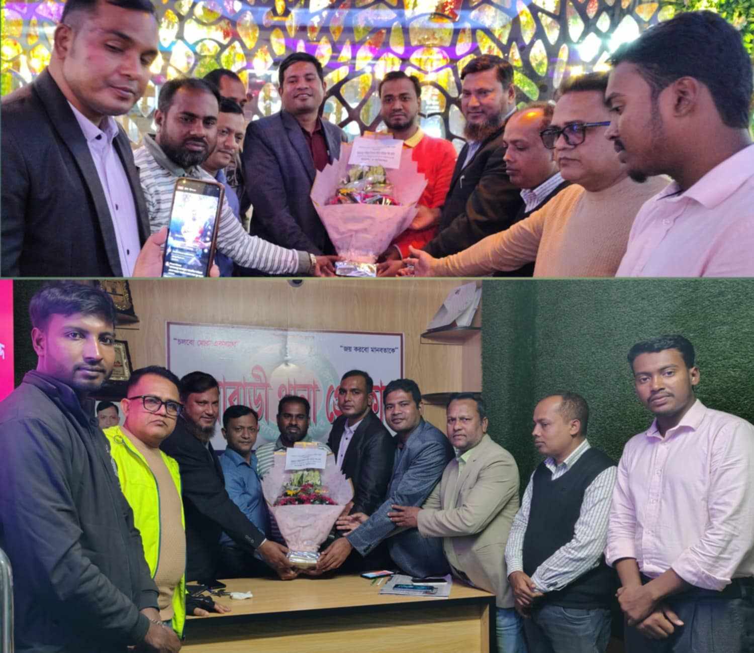 শনিবার (৭ই ডিসেম্বর ২০২৪ইং) সন্ধ্যায় বাংলাদেশ মানব কল্যাণ এসোসিয়েশন এর কেন্দ্রীয় কমিটির সভাপতি ইঞ্জিনিয়ার মোঃ শরিফুল ইসলাম শামীম ভাইয়ের পক্ষে কার্যকরী সভাপতি তারেক রহমান জাহাঙ্গীর ও সাধারণ সম্পাদক কবি ও সাংবাদিক মশিউর রহমান একগুচ্ছ ফুলেল শুভেচ্ছা নিয়ে অভিনন্দন জানাতে কোনাবাড়ি থানা প্রেসক্লাবে আগমন করেন।