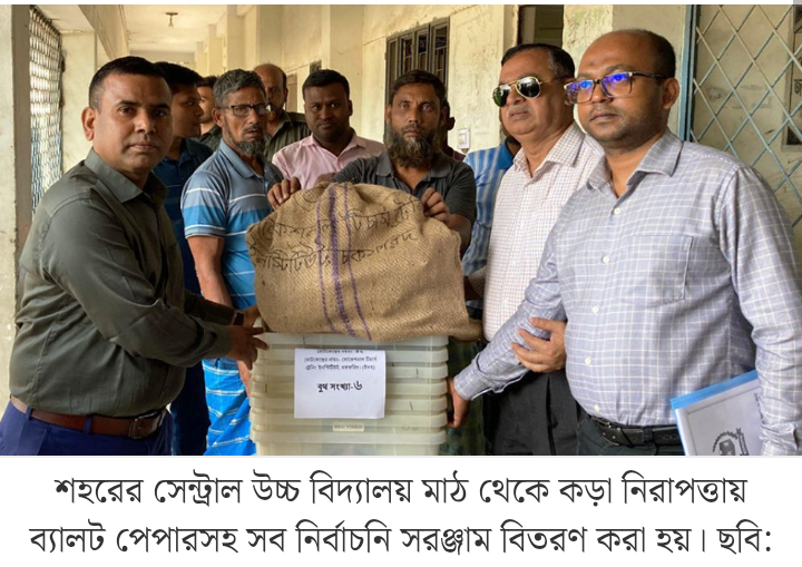 বুধবার (৮ এপ্রিল) বেলা ১১টা থেকে শহরের সেন্ট্রাল উচ্চ বিদ্যালয় মাঠ থেকে কড়া নিরাপত্তায় ব্যালট পেপারসহ সব নির্বাচনি সরঞ্জাম বিতরণ করা হয়।