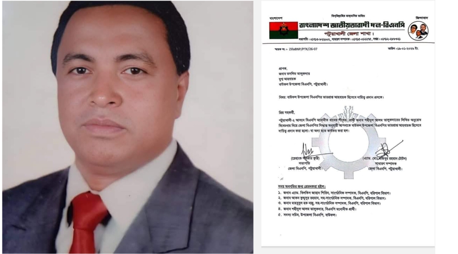 পটুয়াখালী জেলা বিএনপির এক সাংগঠনিক সিদ্ধান্তে তাকে এই নতুন দায়িত্ব প্রদান করা হয়েছে।