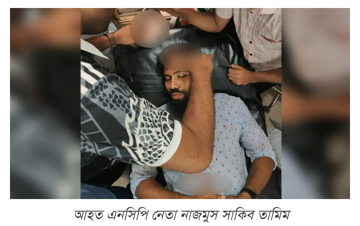 আহত নেতা হলেন উপজেলা এনসিপির সদস্য নাজমুস সাকিব তামিম। তিনি উপজেলা স্বাস্থ্য কমপ্লেক্সে ভর্তি রয়েছেন।