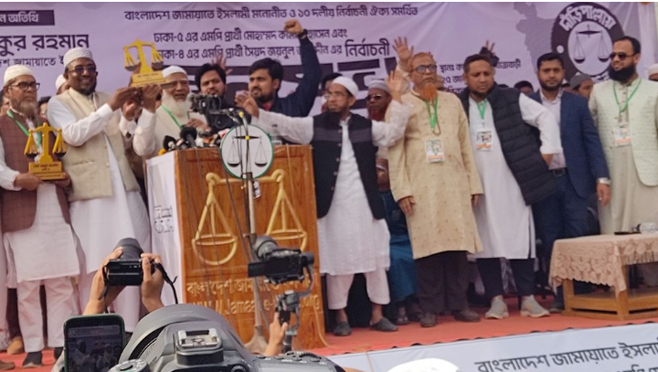 জনসভায় ঢাকা-৪ আসনের প্রার্থী সৈয়দ জয়নুল আবেদীন ও ৫ আসনের প্রার্থী মো. কামাল হোসেনকে ১০ দলীয় জোটের প্রার্থী পরিচয় করিয়ে দিয়ে দাঁড়িপাল্লা প্রতীক হাতে তুলে দেন জামায়াত আমির। তিনি সবাইকে দাঁড়িপাল্লায় ভোট দেওয়ার জন্য আহ্বান জানান এবং জোটের পক্ষে যেখানে যে প্রার্থী আছেন, তাদেরও ভোট দেওয়ার আহ্বান জানান।