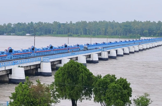 মঙ্গলবার (১৬ সেপ্টেম্বর) সকাল ৯ টায় লালমনিরহাটের হাতীবান্ধা উপজেলার তিস্তা ব্যারেজ পয়েন্টে নদীর পানি বিপদসীমার ২৮ সেন্টিমিটার নিচ দিয়ে প্রবাহিত হয়।